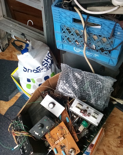 This is just one of DOZENS of old boxes of ''junk'' (treasure?) containing similar old gear and circuits that I have to go through and sort out. You can see why this ongoing ''relocating everything'' project seems never ending with just so many hours in the day to work with it along with everything else going on. These many dozens of similar boxes were hurriedly tossed together when we vacated the old DaviSound building back in 2014 and just all quickly stored in a shed at our prior residence until this current move this past year. Now they MUST be dealt with!
