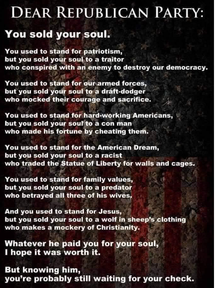 ''After all of my diatribe about Trump as the diabolical cult leader in my previous, initial post (please link above or scroll below), I now think it is important to consider the other side of the coin! All of us who have watched with concern since Trump hijacked the GOP early on, have criticized the ''enablers'' ... those spineless elected Republicans, largely in Congress, who allowed Trump's atrocities to flourish. I commented once, back during Trump's first term, to my hispanic tenant in a conversation about Trump, that he was the most dangerous thing to happen to America in my lifetime. She quickly responded, showing amazing insight, ''Yes, but it is not Trump so much that scares me as all those crazy people who support him. One day Trump will be gone but they will still be here''. An important, insightful observation!