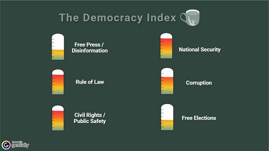 By all means use the Democracy Index graphic from ''The Contrarian''. I checked for a new one this week, but the software probably crashed when they tried to make everything red! 😊