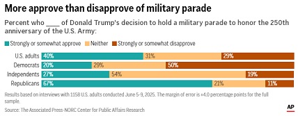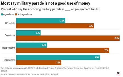Meanwhile ''Big Daddy'', you know who I mean, the ''Felon In Chief'' who is so concerned with ''waste and fraud'' that the cost-saving centerpiece of his “big, beautiful bill,” will cut at least $880 billion to Medicaid to help cover the cost of $4.5 trillion in tax breaks for his weatlthy donors...yes THAT ''Big Orange Daddy'' ... has also announced plans for his big birthday bash in Washington that will cost the taxpayers at least $45 million! He plans to have a military parade that will rival his idols Kim Jong Un, Putin, Stalin, Hitler et al just to feed his ego while forcing the military to endure this as a ''miltary exercise'' whereby they will sleep on the ground and eat MRE maneuvers rations. But, don't worry, they are being paid $50 a day for their fun and if they need hospitalization they can ....oops....that may be a bit of a problem since The Trump regime has cut funding for the VA and fired over 80,000 employees leaving them desparately under-staffed and under-equipped. Oh well, it's all in the name of ''fraud and waste''. Maybe he can just slash a few more government jobs to help offset that 45 million for his party without having to compensate for the $30 million his golf trips have already cost the taxpayers so far (as of mid April) since he took office. It could ONLY HAPPEN IN MAGA AMERICA!