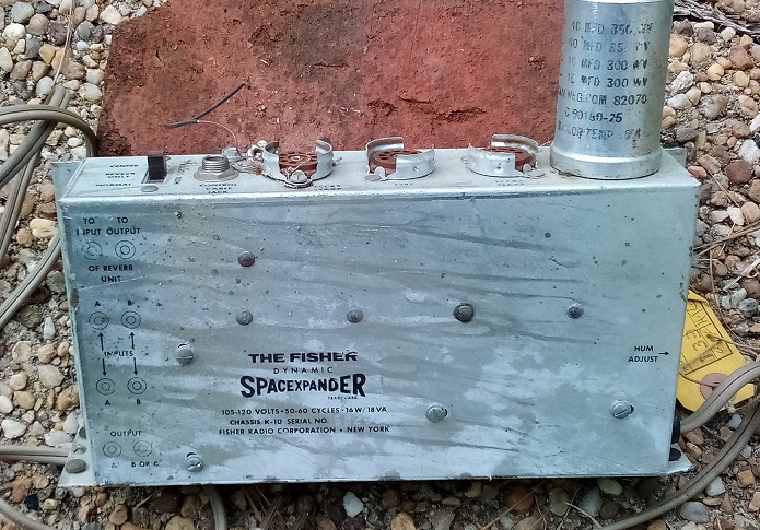 Here's an old classic piece for you. The legendary Fisher ''SpaceXpander'' reverb unit. Back in the '60s (and well into the '70s) almost every studio would have, at least, one of these units as a reverb option as did many Top 40 format radio stations for on-air reverb. This one was mounted underneath our control room console and used for our sole reverb until I started designing and building the ''Lower Plate'', plate reverb systems, the prototype which was mounted in the attic and used at MCP/DaviSound studios. I will likely just put this little gem on our Unique Items sale page ''as is'' so, if any of you are interested in it, let me know. The tubes have been removed (12 AX7 and 12 AT7 I believe) but this unit was working when removed (circa 1976) and would likely fire right up with no issues if retubed. Here again, another little piece of our history that I just no longer have any need for, or storage room for, and hate to see go to waste.